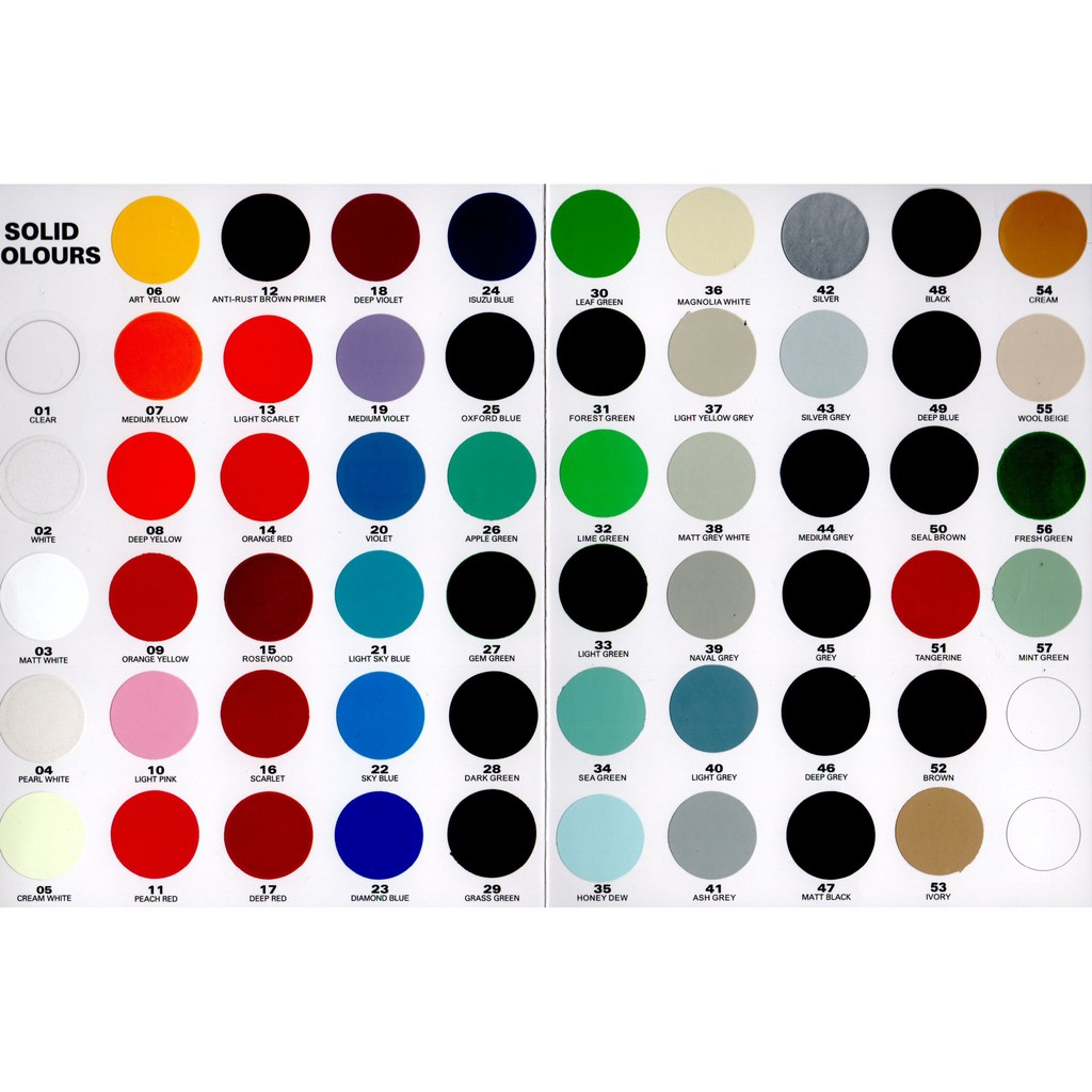 Paint Paint Colour Chart For Cars